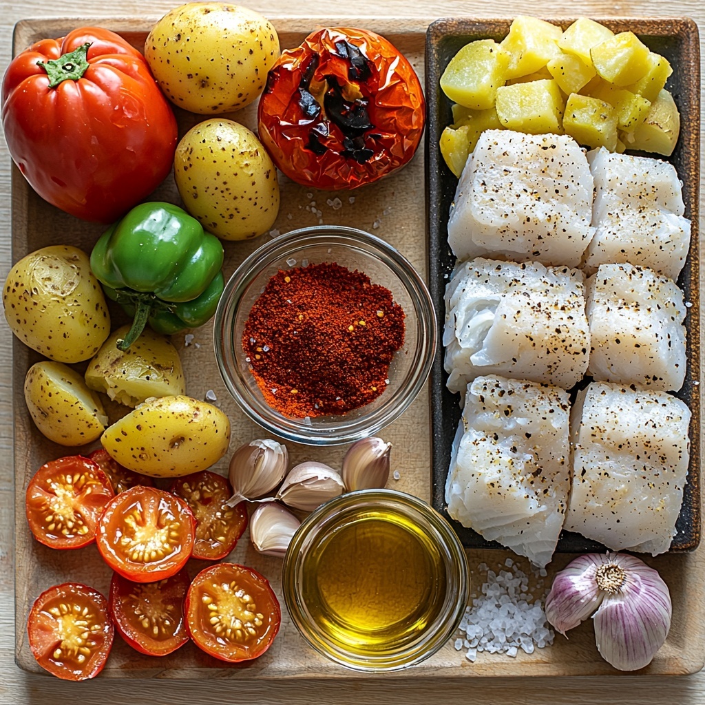 Don’t let the straightforward ingredient list fool you—each item plays a crucial role in building the layers of flavor and texture that make this dish unforgettable. From the silky cod to the sweet bell peppers and fragrant garlic, every element brings something special to the table.