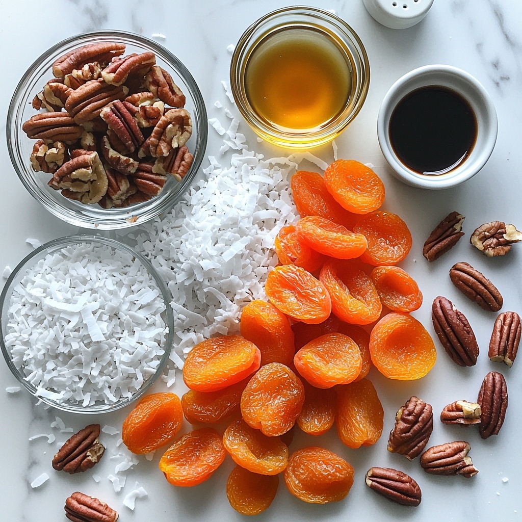 Gathering these ingredients is a breeze, and each one plays a vital role in crafting the perfect balance of flavor, texture, and nutrition in the Apricot Coconut Pecan Bars Recipe. From chewy apricots to nutty pecans, every component is essential for that signature wholesome goodness.