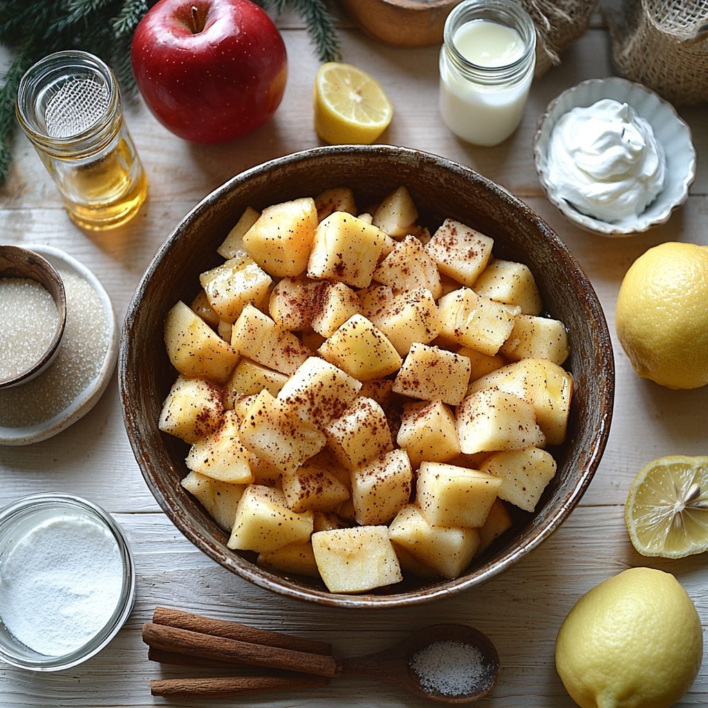 In a large bowl, toss together the diced apples with lemon juice, cinnamon, brown sugar, nutmeg, vanilla extract, and cornstarch. Stir well until every apple piece is coated in the warming spices and thickening mixture. This filling is the soul of your rolls, and balancing these flavors makes all the difference.