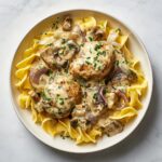 These Beef Stroganoff Meatballs combine tender, seasoned ground beef meatballs with a creamy mushroom and sour cream sauce, inspired by the classic Russian Stroganoff dish. Cooked on the stovetop, the meatballs are seared to a golden brown before being simmered in a rich sauce, making a comforting and hearty meal perfect for serving over egg noodles, mashed potatoes, or polenta.