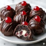 These Black Forest Cookie Dough Brownie Bombs combine the rich, fudgy goodness of brownies with a luscious cherry-studded cookie dough center, all encased in a smooth chocolate coating. Perfect as an indulgent treat, they offer the classic Black Forest flavor in a fun, bite-sized dessert.