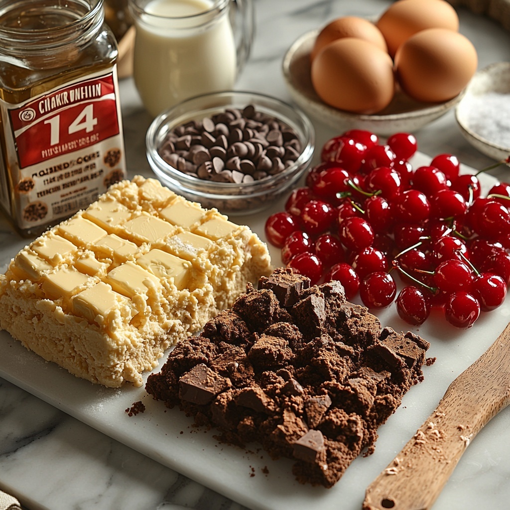 The beauty of the Black Forest Cookie Dough Brownie Bombs Recipe lies in its accessible ingredients that come together to build powerhouse flavors and textures. From fudgy brownie base to the creamy cherry cookie dough and the shiny chocolate shell, each component plays a crucial role in making these bombs irresistible.