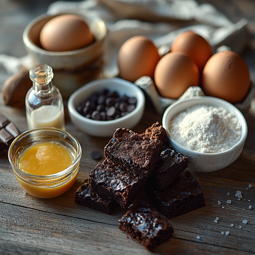- 4 large eggs: Bind the ingredients and contribute to a fudgy, moist texture.