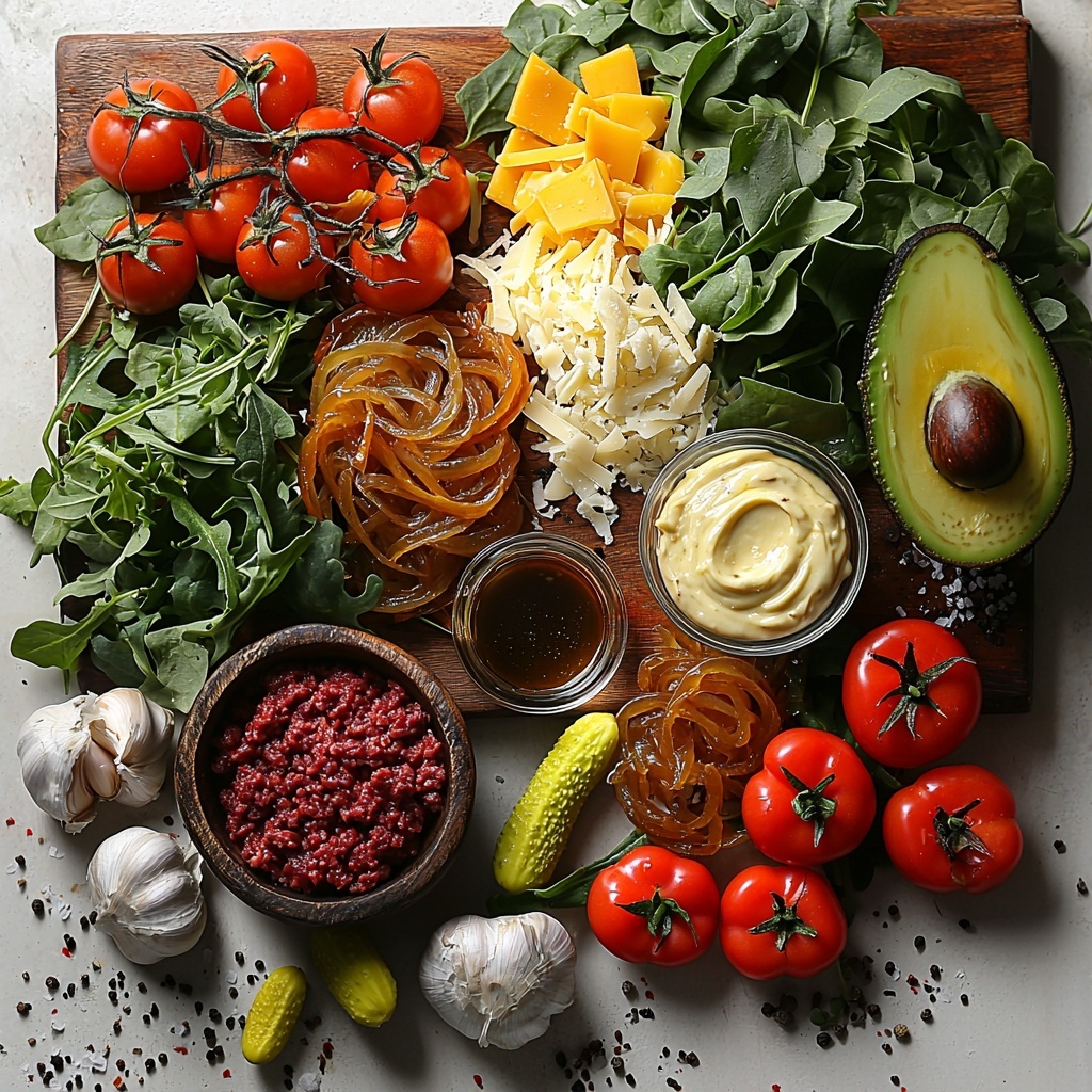 This recipe shines because of its simplicity and balance. Each ingredient plays a crucial role: the rich ground beef provides heartiness, the bright greens add freshness, and the caramelized onion aioli delivers a tangy, sweet creaminess that elevates every component. Gather these essentials with confidence, knowing each one will transform your bowl into a masterpiece.