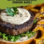 - For the Caramelized Onion Aioli: ½ cup mayonnaise, 1 tablespoon Dijon mustard, 2 tablespoons balsamic vinegar, 1 tablespoon caramelized onions (reserved from cooking).