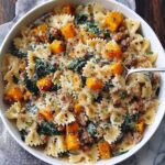 This Butternut Squash Pasta with Sausage and Spinach is a comforting, flavorful dish combining the natural sweetness of roasted butternut squash with savory Italian sausage and fresh spinach. Tossed with creamy Parmesan-infused sauce and your choice of penne, rigatoni, or farfalle pasta, it’s a satisfying meal perfect for family dinners or cozy nights in.
