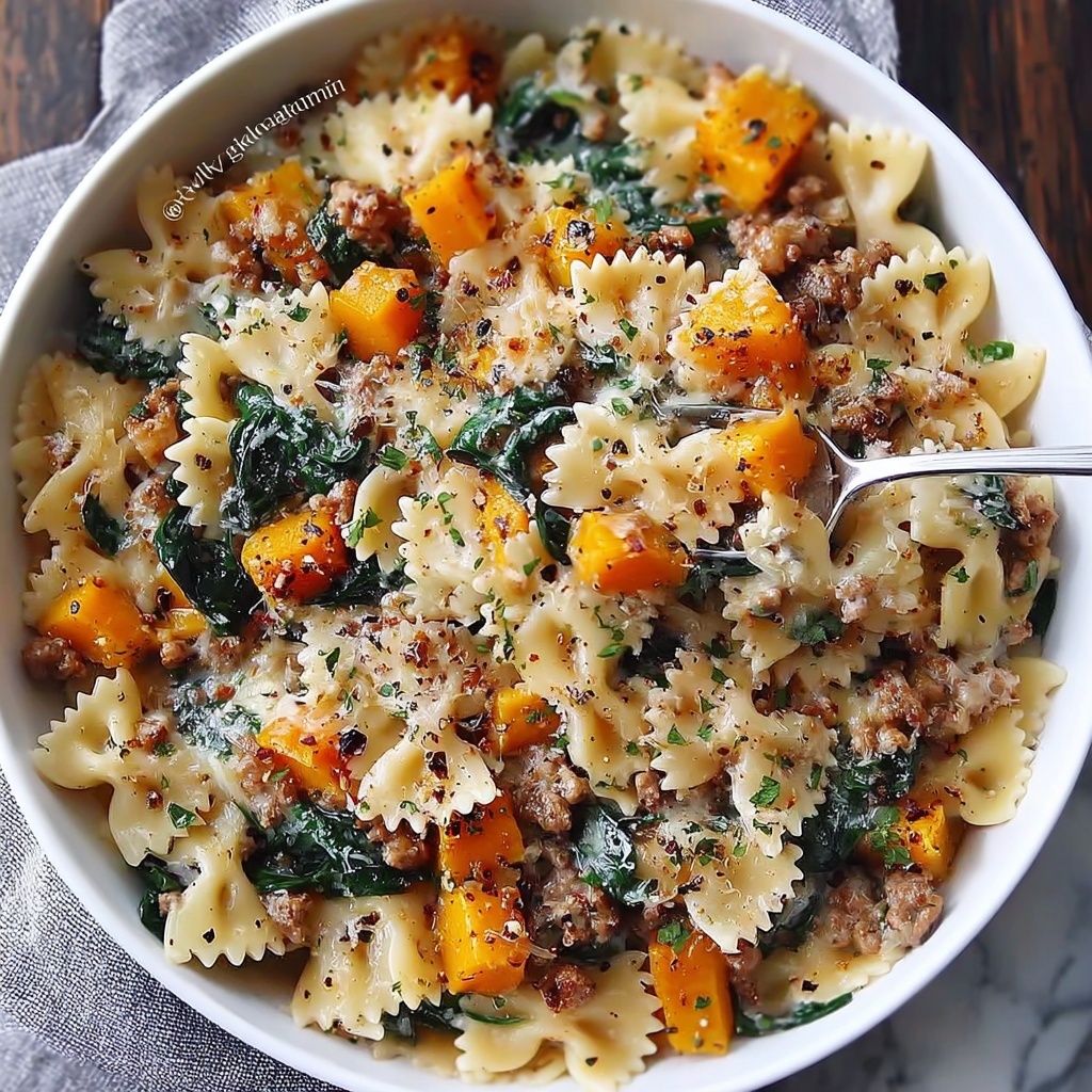 How to Serve Butternut Squash Pasta with Sausage and Spinach Recipe