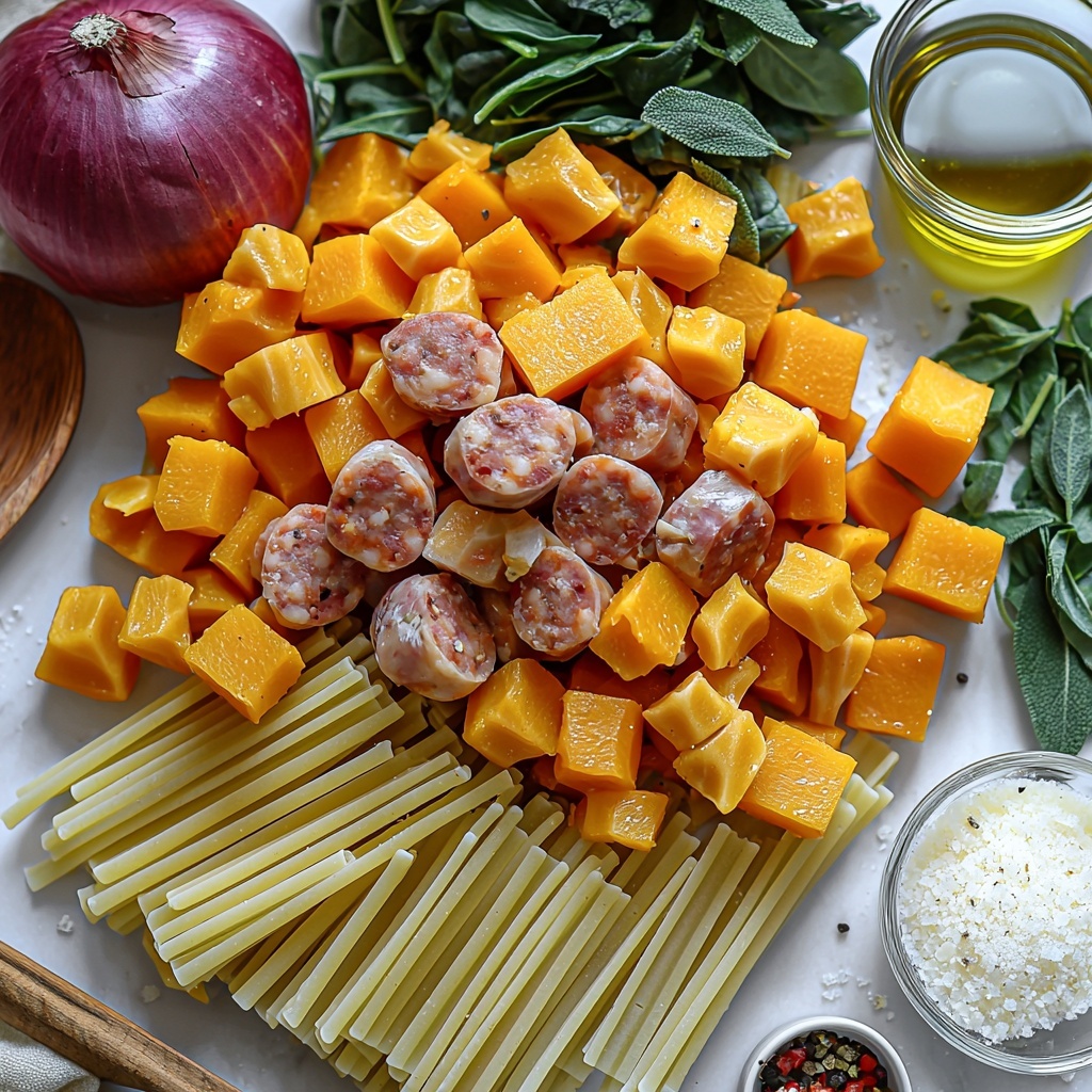 This recipe comes together with straightforward, wholesome ingredients that each play a vital role in building the layers of flavor, texture, and color. From the sweetness of roasted squash to the spicy depth of Italian sausage, every item is essential for this dream dish.