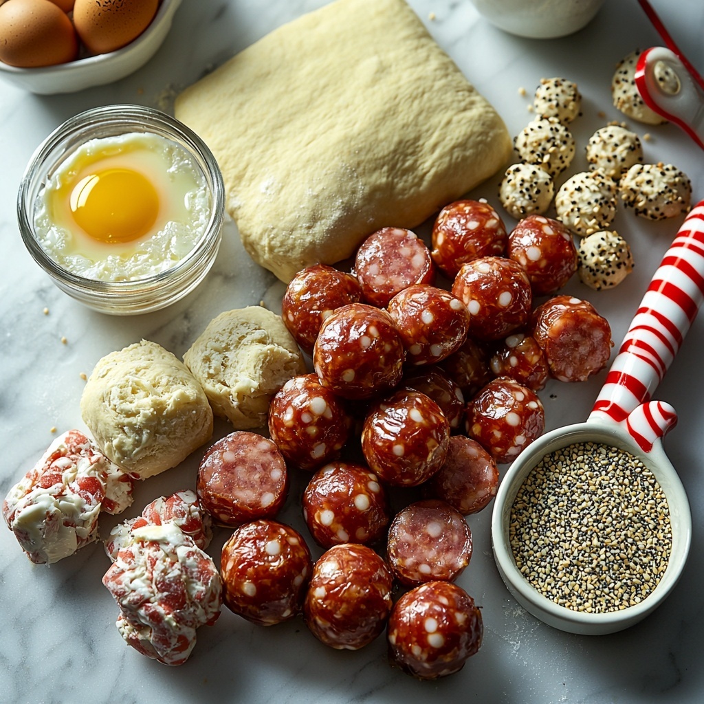 Getting started on this Candy Cane Pigs in a Blanket Recipe is super easy with just a handful of simple ingredients. Each one plays a vital role, from creating that soft, buttery wrap to adding texture and a festive finish.