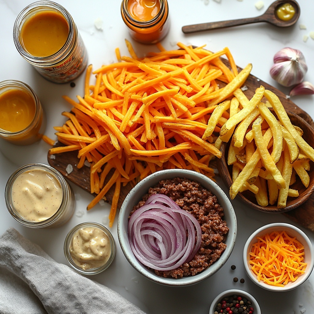 Every ingredient in this recipe is straightforward yet vital, playing a key role in delivering that iconic cheeseburger taste with a fun, casserole twist. From the savory ground beef and sharp cheddar to the crispy fries and tangy burger sauce, each component contributes layers of flavor and texture that make this dish unforgettable.