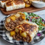 These Cheesy Beef and Potato Burritos combine crispy air-fried potatoes with seasoned ground beef, melty nacho cheese, and flavorful taco sauce wrapped in soft flour tortillas. Perfect for a hearty and delicious meal that brings the comforting flavors of a classic burrito with a satisfying crunch.