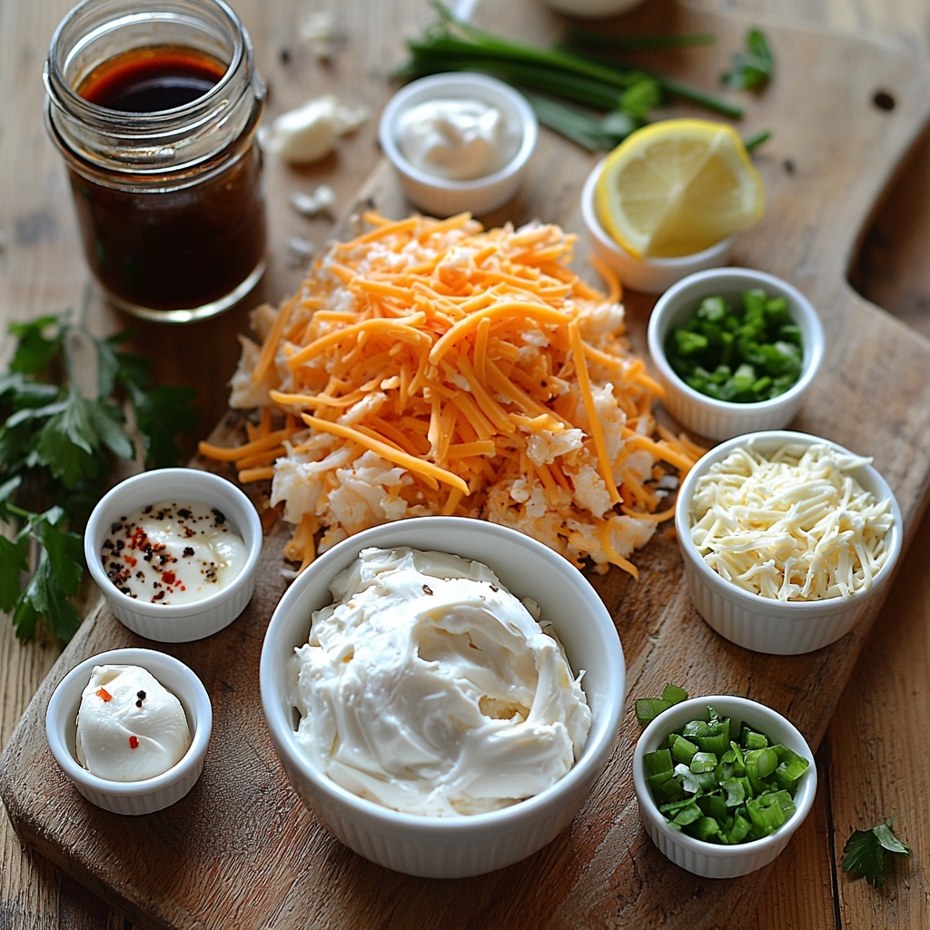 The magic of this Cheesy Crab Rangoon Dip Recipe lies in its simple yet carefully chosen ingredients that create a perfect balance of creamy richness, subtle tang, and a touch of zest. Each ingredient plays an essential role in layering flavor and texture, resulting in a dip that’s both comforting and exciting.