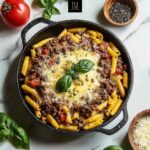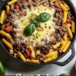 Cheesy Penne with Ground Beef is a comforting and hearty pasta bake featuring tender penne, savory browned ground beef, and a rich tomato sauce, all topped with gooey mozzarella and Parmesan cheeses. This easy dinner recipe is perfect for family meals and meal prepping, delivering satisfying flavors with a golden baked cheese crust.