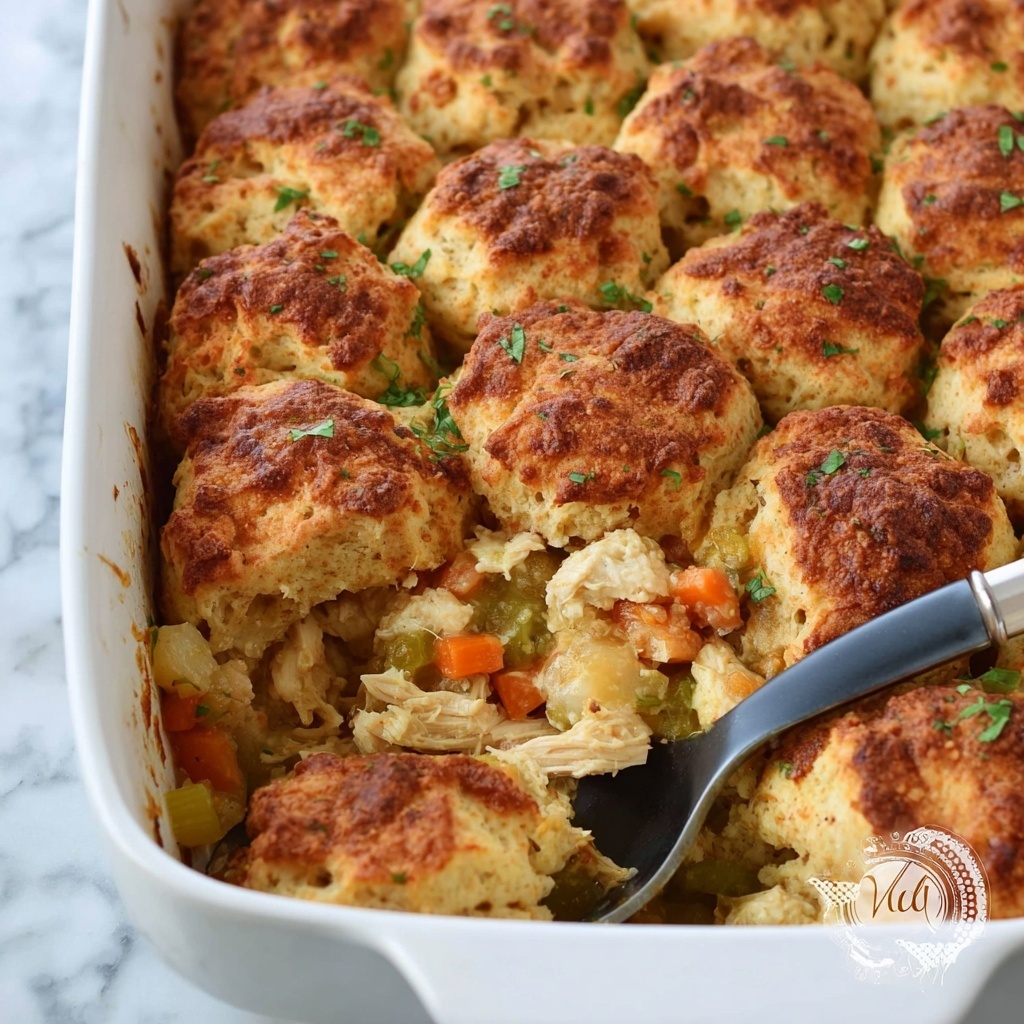 For a fun twist, try serving individual portions in mini cast-iron skillets or ramekins for a rustic, dinner-party feel. You can also line your baking dish with flaky puff pastry underneath the biscuit topping for an extra layer of buttery crispness.