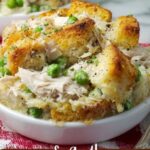 Once out of the oven, allow the casserole to cool for a few minutes to set slightly before serving. This makes it easier to slice and enjoy the perfect balance of fluffy topping with the creamy, savory chicken salad underneath—warm, comforting, and utterly delicious.