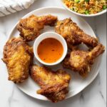 Delicious Chinese-style fried chicken wings marinated in a flavorful blend of spices and sauces, then double-fried to achieve an irresistibly crispy exterior and juicy interior. Perfect as a snack or appetizer, these wings deliver a balance of savory, slightly sweet, and aromatic notes that pair wonderfully with vegetable fried rice.