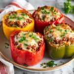 To reheat, place leftover stuffed peppers in a 350°F (175°C) oven for 15 to 20 minutes until warmed through and the cheese is bubbly again. You can also microwave them covered on medium heat, though the oven method keeps the peppers from getting soggy.