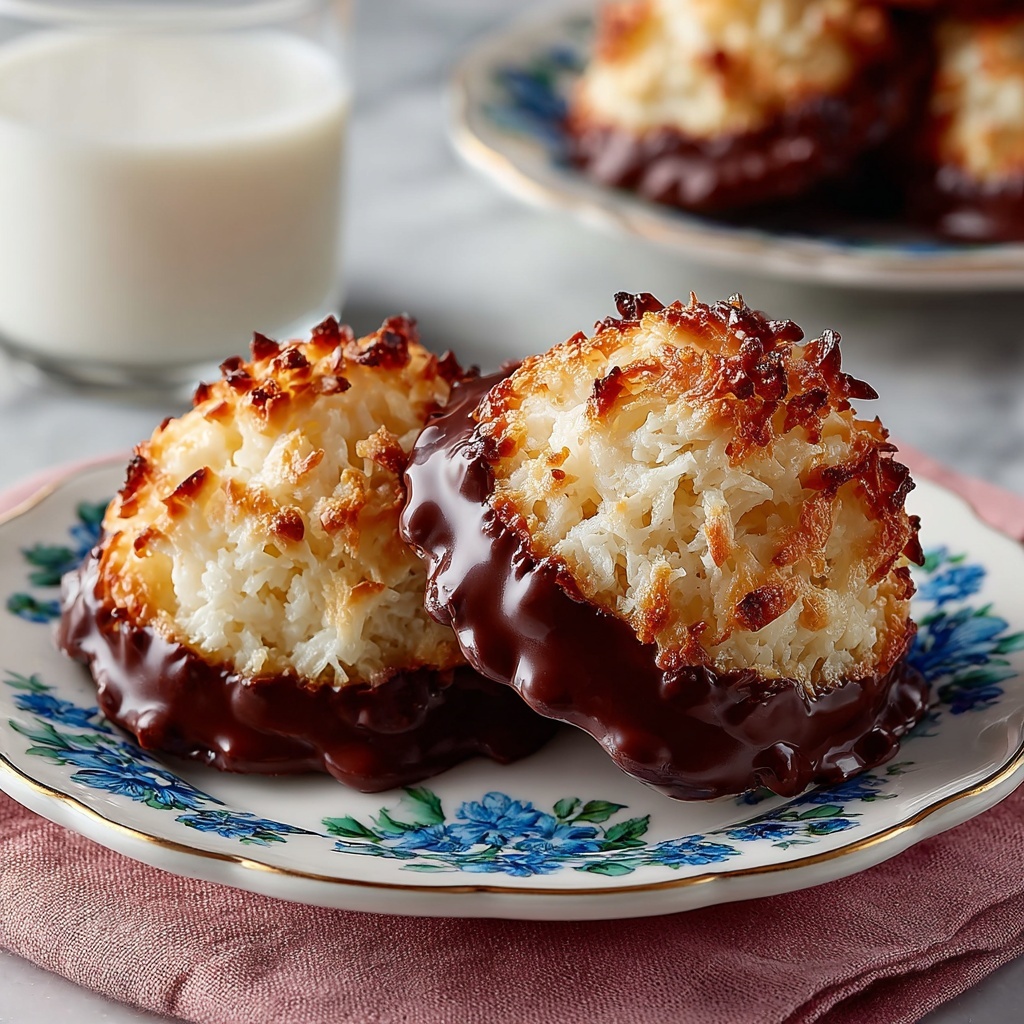 This Coconut Macaroon recipe delivers delightfully chewy cookies with a golden-brown exterior and a rich coconut flavor, enhanced by a smooth semi-sweet chocolate coating. Perfectly balanced with sweetened condensed milk and fluffy egg whites, these macaroons are easy to prepare and bake to perfection for a classic treat that’s both indulgent and comforting.