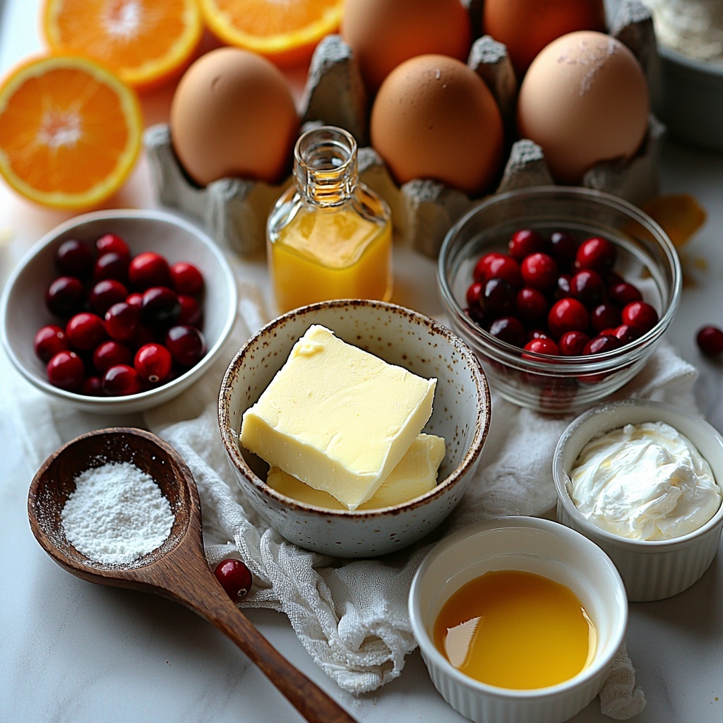 Gathering your ingredients for this cake is refreshingly simple, with every item playing a vital role in creating the rich taste, tender crumb, and irresistible aroma. From the creamy butter that forms the cake’s foundation to the fresh cranberries that add a delightful pop, each ingredient enhances the final masterpiece.