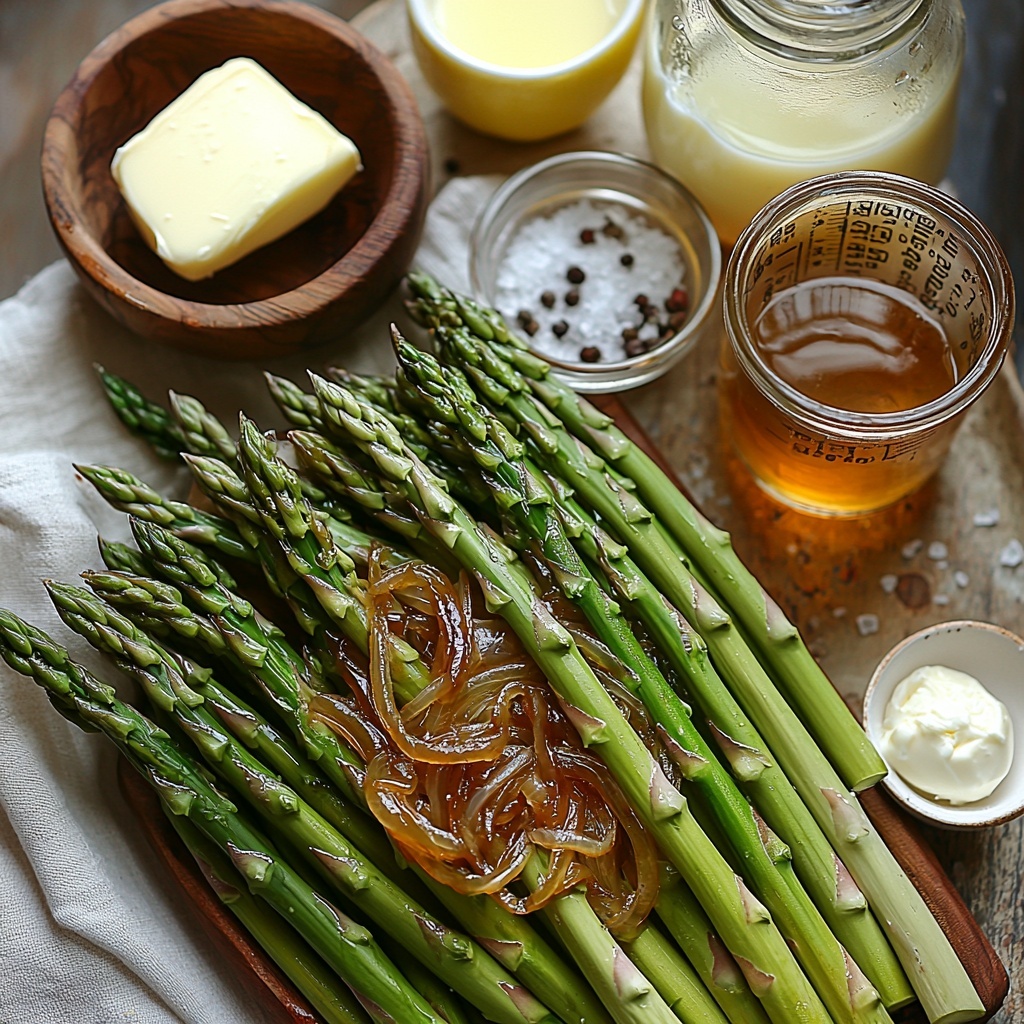 This Creamy Asparagus Soup is a velvety, comforting dish perfect for spring or any time you want a fresh, flavorful vegetable soup. Made with tender asparagus, sautéed onions, chicken broth, and enriched with heavy cream and a splash of lemon juice, this soup delivers a delicious balance of creaminess and brightness. Easy to prepare and ready in 45 minutes, it’s an ideal starter or light meal for four servings.