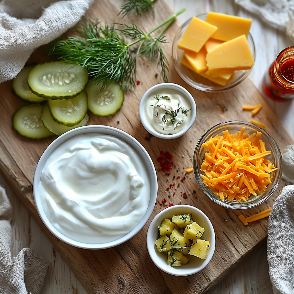 This Creamy Dill Pickle Dip Recipe calls for simple but vibrant ingredients that work in harmony to create a creamy, flavorful treat. Each element plays a crucial role in achieving the perfect texture and taste, making this dip stand out without any complicated steps.