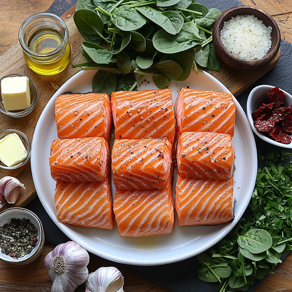 The first step to creating this stunning dish is to pat your salmon fillets dry — this helps achieve a beautiful golden crust during cooking. Then, generously season both sides with salt and freshly ground black pepper. A well-seasoned fillet is the foundation for every bite bursting with flavor.