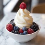 Just before serving, crown each creamy delight with a generous handful of fresh berries. Their vibrant colors and natural tart sweetness create a stunning contrast to the smooth cream.