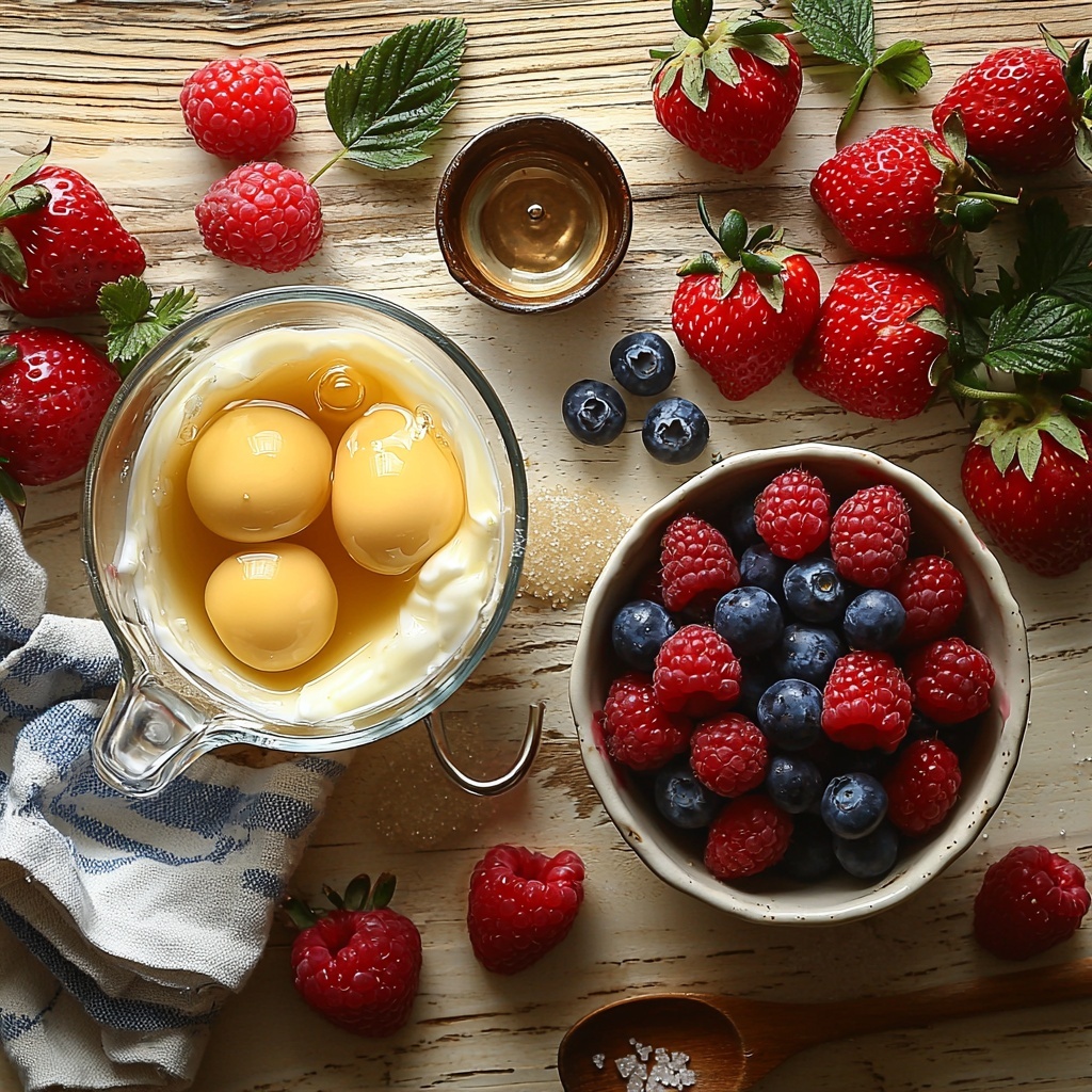 The beauty of this Delightful Bavarian Cream with Berries Recipe lies in its simple yet essential ingredients, each chosen to build a rich, creamy base and a fresh, fruity finish. These ingredients work harmoniously to create a dessert that is luxurious both in flavor and texture.