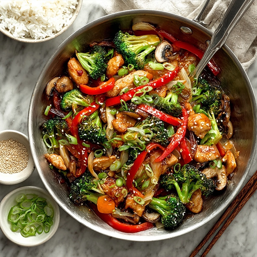 This Easy Chicken Stir Fry with Vegetables and Sesame Recipe pairs beautifully with steamed jasmine rice or brown rice to soak up every last bit of that luscious sauce. You could also serve it alongside noodles for a comforting twist. Steamed or lightly pickled vegetables can add more crunch and freshness on the side.