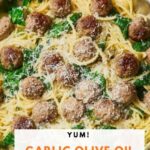 Garlic Olive Oil Pasta with Meatballs and Spinach Recipe