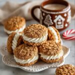 These Gingerbread Oatmeal Cream Pies are soft, spiced gingerbread cookies packed with hearty oats, sandwiched together with a light and fluffy vanilla cream filling. Perfectly balancing warm holiday spices with creamy sweetness, these sandwich cookies make a delightful treat for festive gatherings or cozy afternoons.