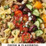 This refreshing Greek Chicken Pasta Salad combines tender marinated chicken thighs with al dente pasta and fresh vegetables like cucumber, bell pepper, Kalamata olives, and grape tomatoes. Tossed with a zesty lemon-oregano dressing and topped with crumbly feta cheese, it’s a vibrant, flavorful dish perfect for a light lunch or a satisfying dinner.