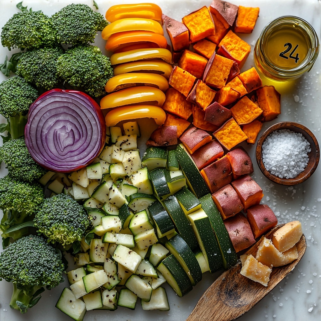 Gathering simple, wholesome ingredients is the first step to creating this incredible roasted vegetable dish. Each component plays a key role: the variety of vegetables offers different textures and colors, while the herbs and seasonings add depth and warmth. The olive oil and Dijon mustard help everything caramelize and meld together beautifully during roasting.