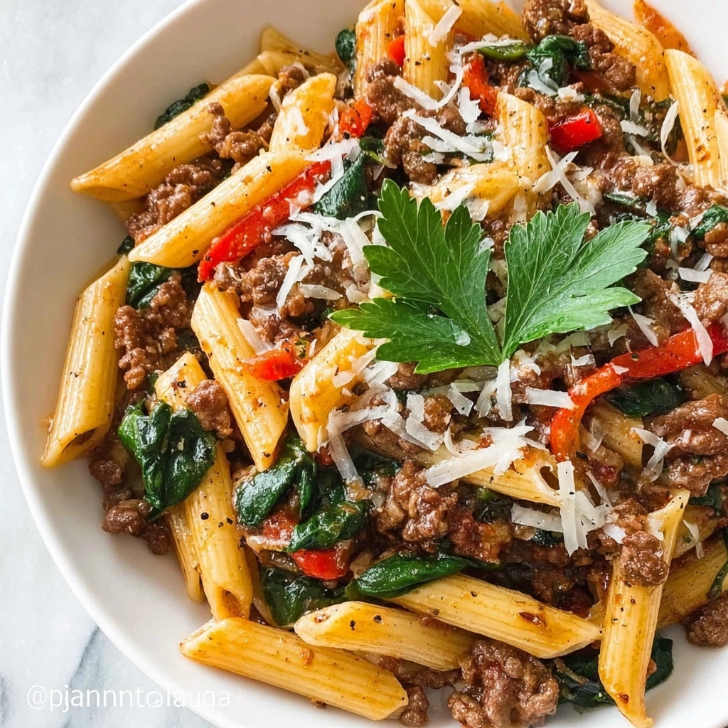 If you are looking for a comforting and satisfying meal that packs a serious protein punch, this High Protein Creamy Beef Pasta Recipe is exactly what your dinner table needs. It marries the hearty richness of lean ground beef with the silky creaminess of low-fat cream cheese and Greek yogurt, all tossed with whole wheat pasta for a wholesome bite. Every forkful delivers a delightful mix of textures and flavors — from tender pasta strands to savory beef, bright bell pepper, and fresh spinach — making this dish a true all-in-one dinner sensation that will keep you energized and totally satisfied.