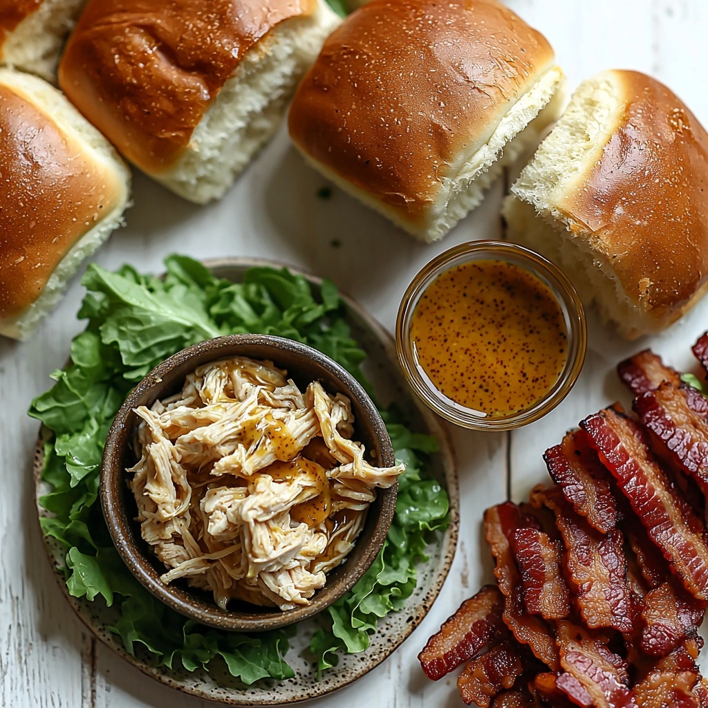 Delight in these Honey Mustard BLT Chicken Sliders, a perfect blend of tender shredded chicken mixed with tangy honey mustard sauce, crispy bacon, and fresh lettuce, all nestled in soft slider buns. This easy-to-make recipe promises a flavorful treat ideal for gatherings or quick meals.