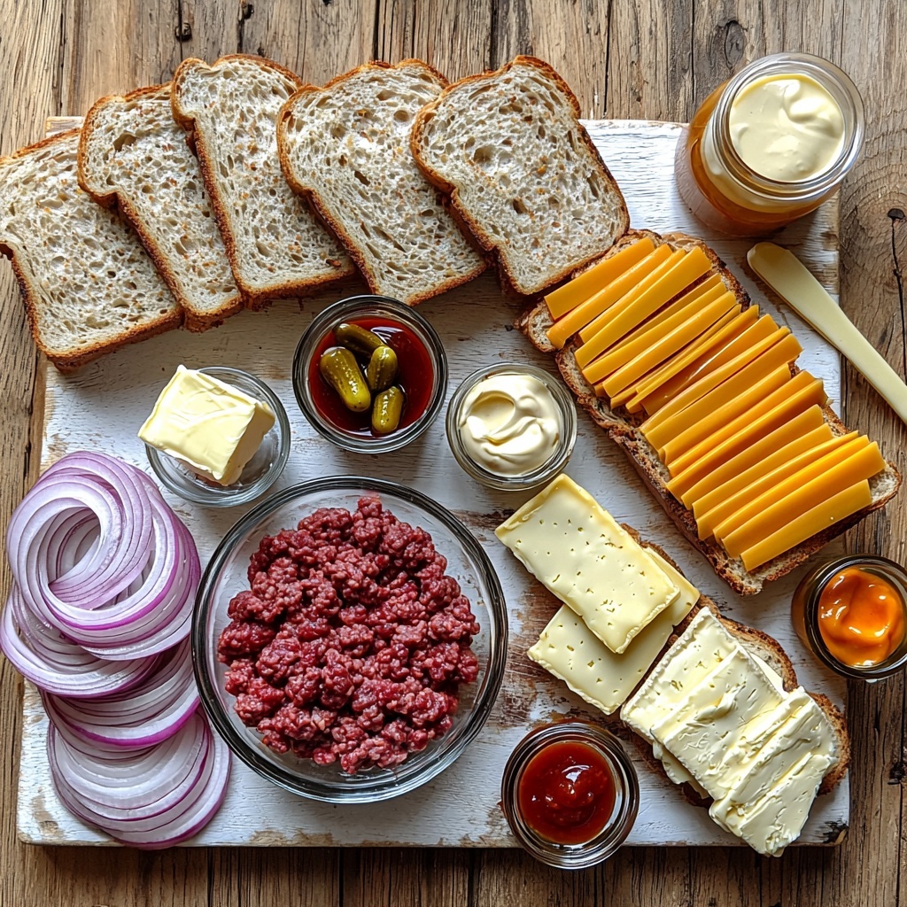 These ingredients are wonderfully simple yet perfectly chosen to build a patty melt bursting with flavor, texture, and that nostalgic charm. Each element plays a crucial role, from the juicy 85/15 ground beef blend that promises tenderness to the creamy cheeses that bring luscious meltiness and the rye bread that gives just the right crispness and slight tang.