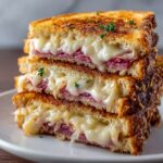 A classic deli favorite, this Irresistible Crispy Reuben Sandwich features layers of savory corned beef, tangy sauerkraut, melted Swiss cheese, and zesty Russian dressing between buttery, toasted rye bread slices. Perfectly crisped in a skillet, it’s a comforting sandwich you can’t resist!