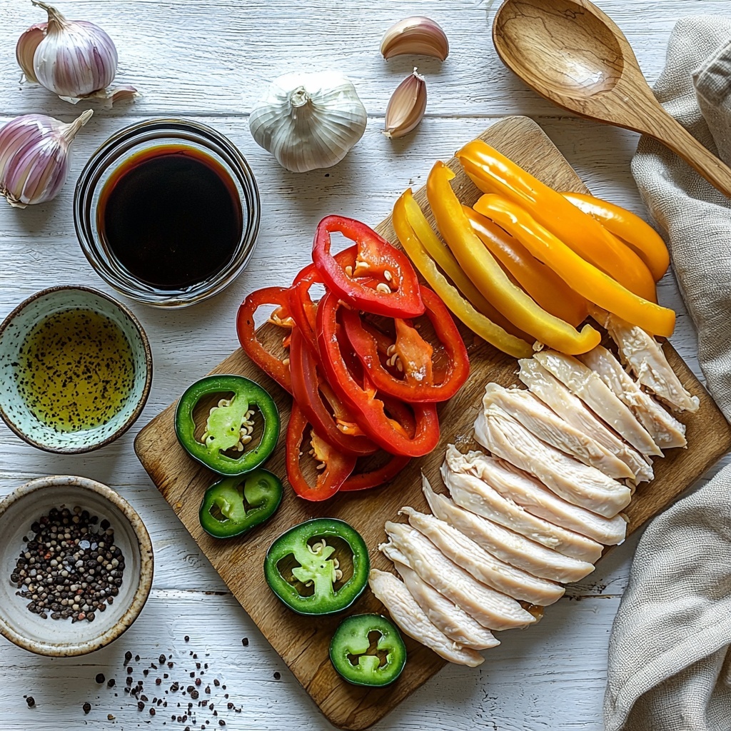 Slice the chicken breast thinly and against the grain to ensure tender, quick-cooking pieces that blend perfectly with the vegetables in every bite.