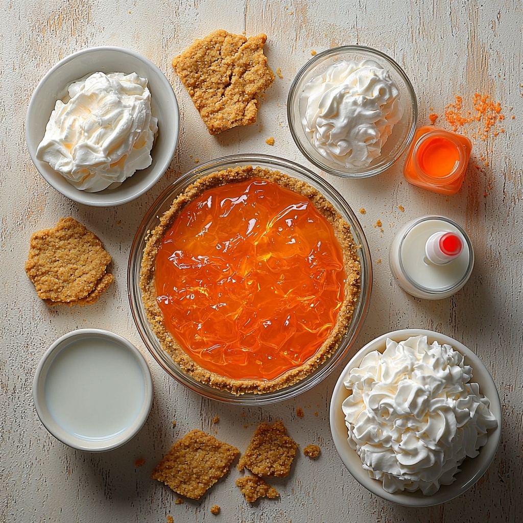 Creating this Jello Creamsicle Pie Recipe is wonderfully simple thanks to a handful of essential ingredients. Each one plays a vital role: the graham cracker crust adds a buttery crunch, the orange jello provides a burst of citrusy sweetness, and the smooth vanilla pudding combined with whipped topping creates that signature creamy texture.