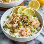 This Lemon Shrimp Bowl features succulent sautéed shrimp glazed with a tangy lemon and soy sauce mixture, served over fluffy white or brown rice. A quick and flavorful dish perfect for a nutritious weeknight dinner, combining the bright zest of fresh lemon juice with savory garlic and a hint of honey sweetness.