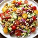 A vibrant and refreshing Mediterranean Chickpea Feta Salad that combines protein-packed chickpeas with fresh vegetables, tangy feta cheese, and a flavorful olive oil dressing. Perfect for a healthy lunch or a light dinner, this salad is easy to prepare and bursting with Mediterranean flavors.