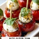 Mini Caprese Mozzarella Bites are delightful, bite-sized appetizers featuring juicy cherry tomatoes, fresh mozzarella pearls, and fragrant basil leaves, all drizzled with a sweet and tangy homemade balsamic glaze. Perfect for parties or light snacks, these easy-to-make skewered bites offer a refreshing and flavorful taste of classic Italian Caprese salad in a convenient finger-food format.
