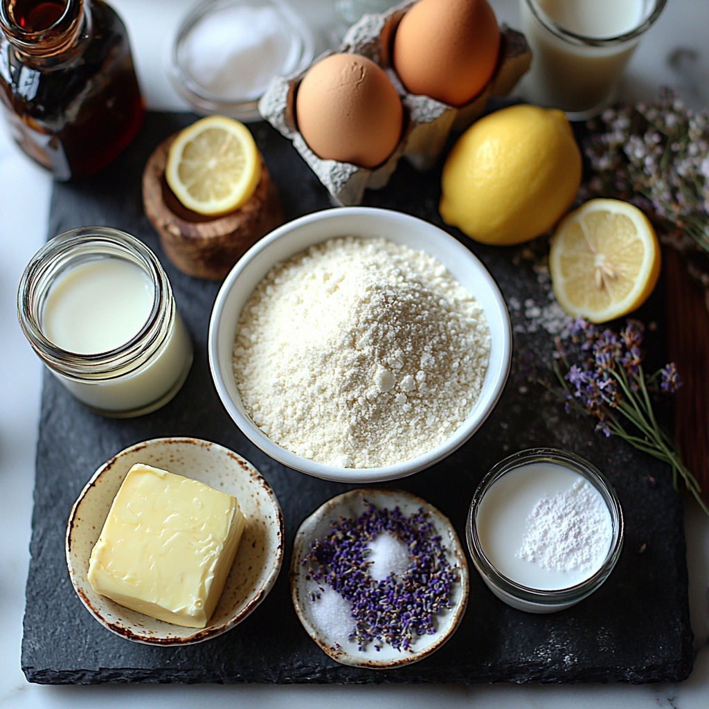 The magic behind these Mini Lemon Cakes with Lavender Glaze Recipe lies not only in expert technique but also in its wonderfully simple yet purposeful ingredients. Each component plays a vital role in delivering the perfect balance of texture, flavor, and visual appeal.