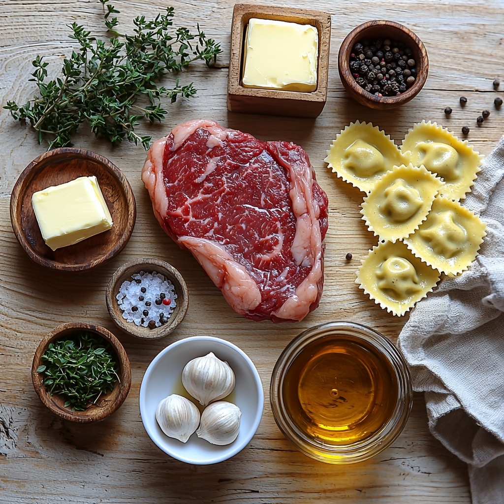 - 1 package cheese ravioli: Pillowy pasta filled with creamy cheese adds a delightful softness to contrast the steak.