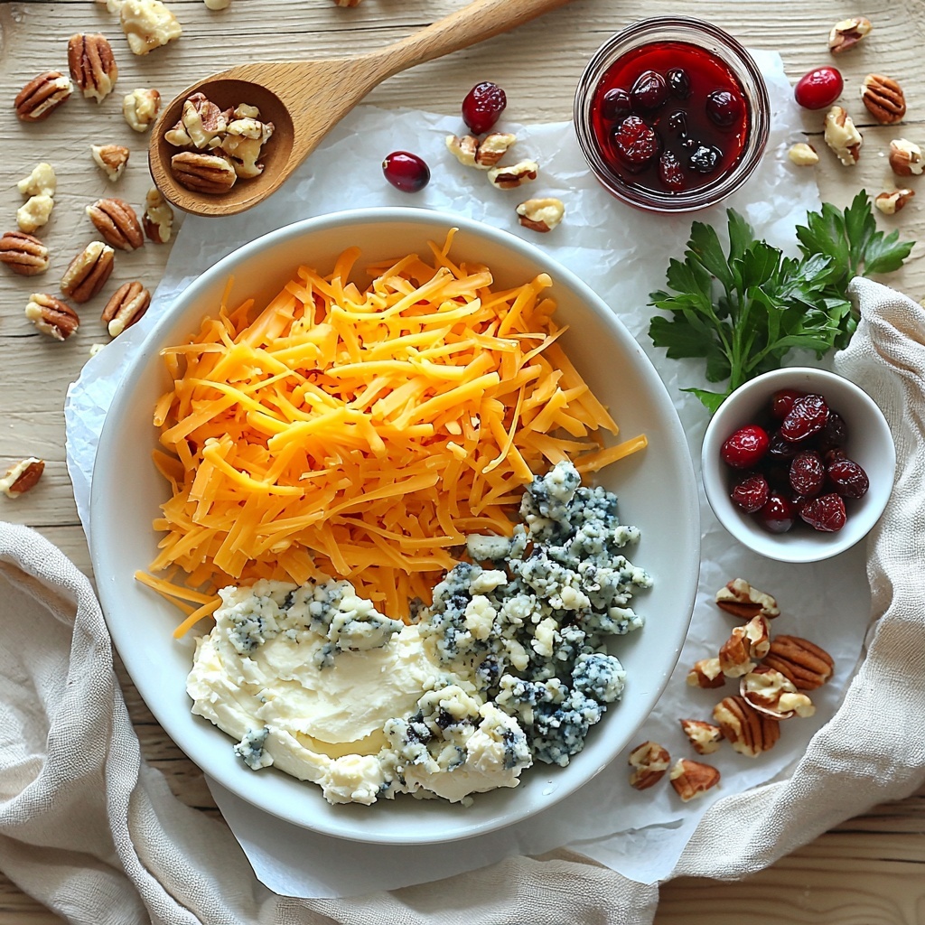 The magic of the Ornament Cheese Ball Trio Recipe comes from a handful of simple but carefully selected ingredients. Each one plays a crucial role: the cheeses provide richness and depth, the spices add warmth, and the coatings bring texture and bright pops of color that make these cheese balls visually stunning and delicious.