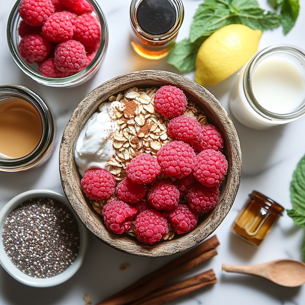 The magic of this Raspberry Overnight Oats with Lemon Vanilla Yogurt or Vegan Chocolate Variante Recipe lies in its simplicity. Each ingredient plays a crucial role, from providing texture and color to delivering that burst of flavor and nourishment. Grab your oats, chia seeds, fresh raspberries, and a few pantry staples to create these two incredible variations.