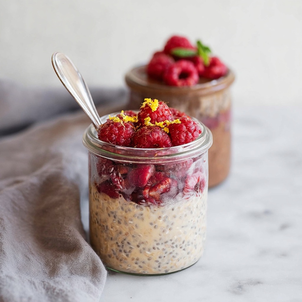2. Add Toppings for Lemon Variation: Top the mixture with fresh or frozen raspberries and lemon zest. Cover the jar or container securely and refrigerate for a minimum of 2 hours, preferably overnight, to allow flavors to meld.