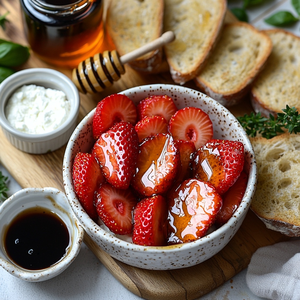 In a bowl, gently toss the sliced strawberries with honey, balsamic vinegar, and a pinch of salt. Each ingredient is key here—the honey sweetens, the balsamic provides tang and complexity, and the salt heightens all the natural flavors. This mixture sets the tone for the rest of the dish.