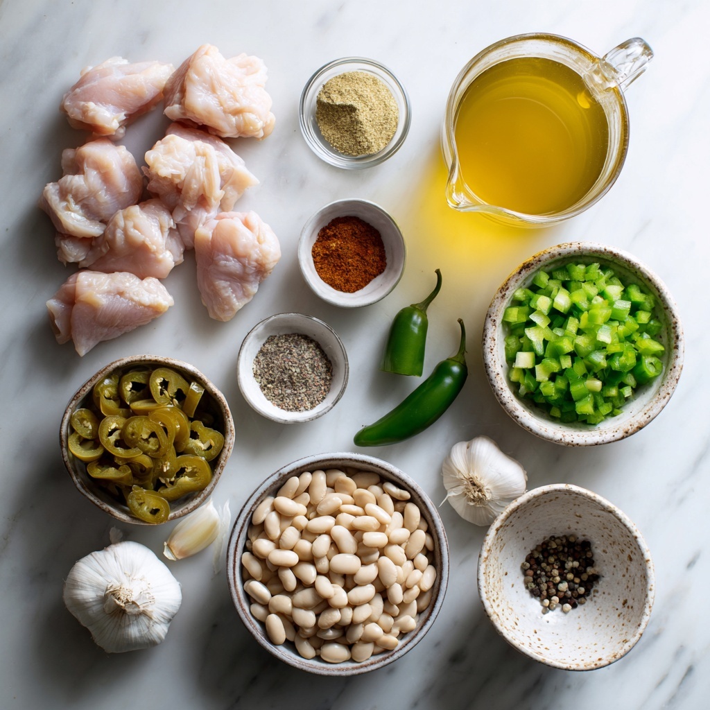Each ingredient in this Slow Cooker White Chicken Chili Recipe is straightforward but carefully chosen to build layers of flavor, texture, and vibrant color. From the tender chicken thighs to the aromatic spices, every element enhances the final dish in an essential way.