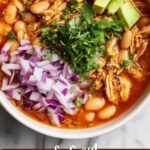 The chili has a lovely creamy broth but is not overly thick. If you prefer a thicker texture, you can mash some of the beans slightly before serving or cook it uncovered on low for a bit longer to reduce the liquid.